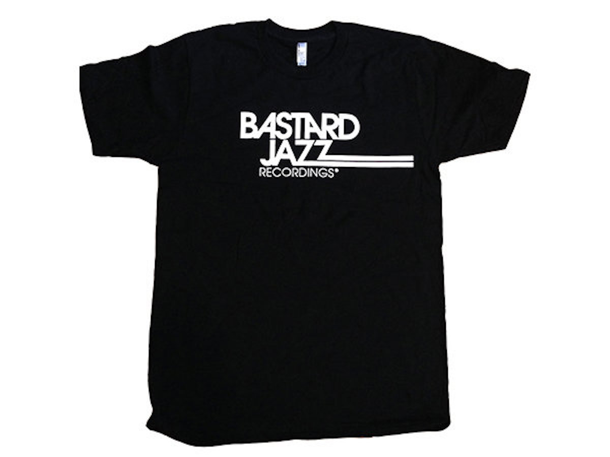 Hand drawn Bastard Jazz 20 Year Anniversary white tee by Berlin's Rahel Susskind, (the artist from Potatohead People's "Nick & Astro's Guide To The Galaxy" and many other great records). 100% preshrunk combed ring spun cotton, classic fit. Printed with waterbase ink for a soft print feel.